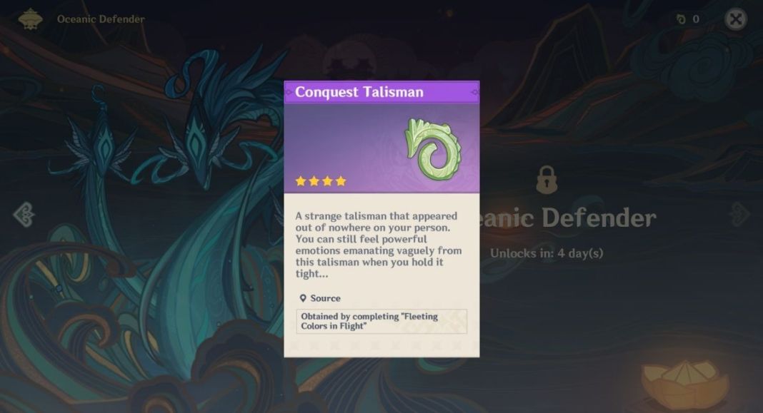 Web How to Get Talismans. Web Genshin Impact players can only get the Conquest Talisman by participating in Oceanic Defender which is a small part of the Fleeting Colors in Flight. Web Conquest Talismans can be picked up during the Oceanic Defender task.